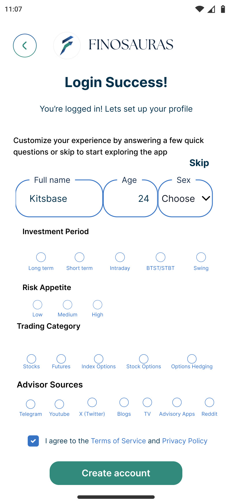 Finosauras is a mobile app designed to help users track stock recommendations, compare advisor credibility, and monitor market trends—all in one place. The goal was to make investment insights accessible and actionable for both new and experienced investors.
